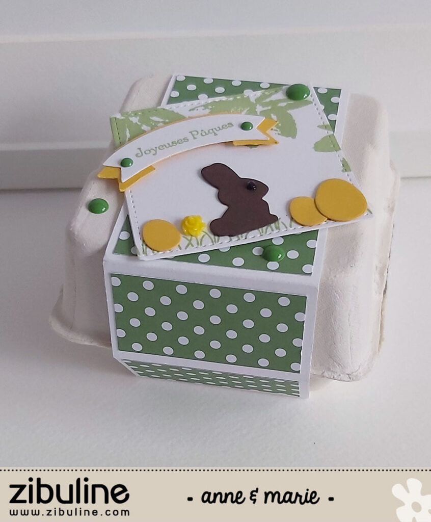 Dernière ligne droite pour Pâques… Voici un bel ensemble à offrir imaginé et réalisé par Anne-Marie Mdt. Produits Zibuline utilisés :