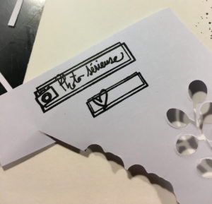 - Découpez un dies que vous aimez en en 2 morceaux de façon à ce que vous puissiez en mettre un bon en haut à droite et en bas à gauche de votre photo.