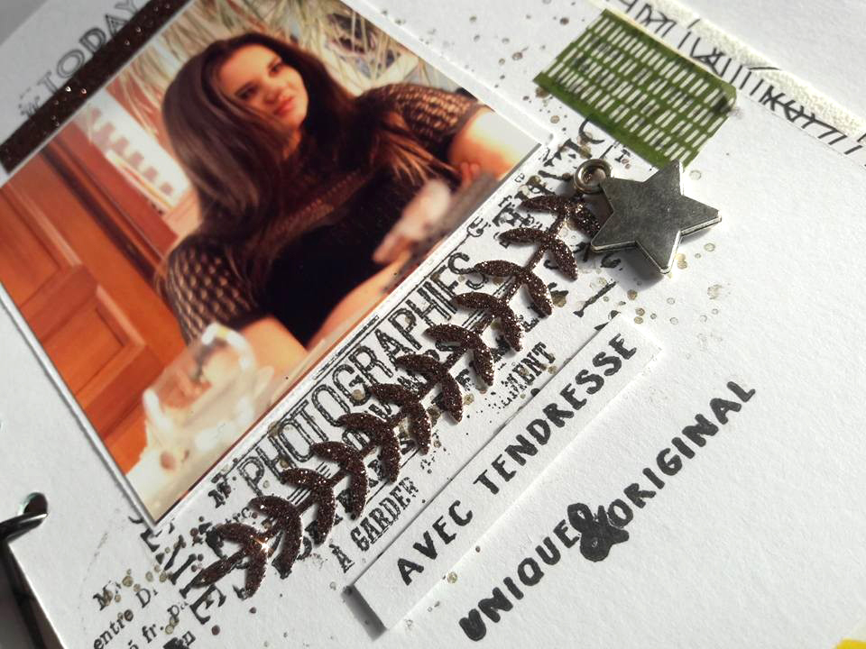 Des grisgris décoratifs viennent donner la touche finale à l’album : breloques, pompon fils… le tout maintenu par une épingle à nourrice poire Zibuline.
