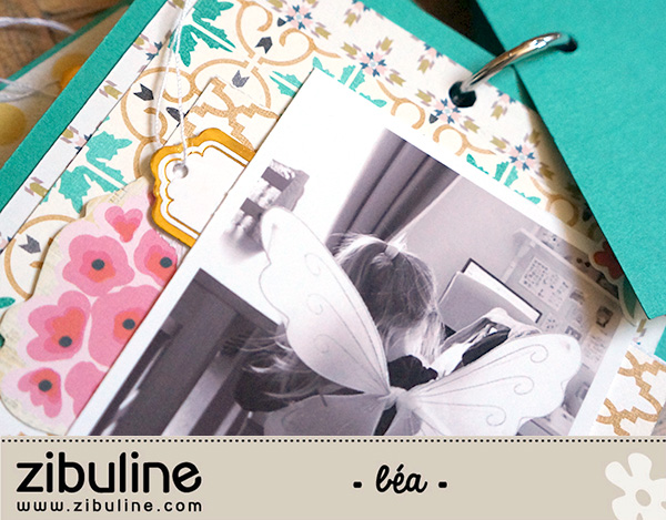 Chaque page de mon album mesure 10×13 cm liées par un anneau de 2 cm. 3 papiers superposés tapissent le fond.