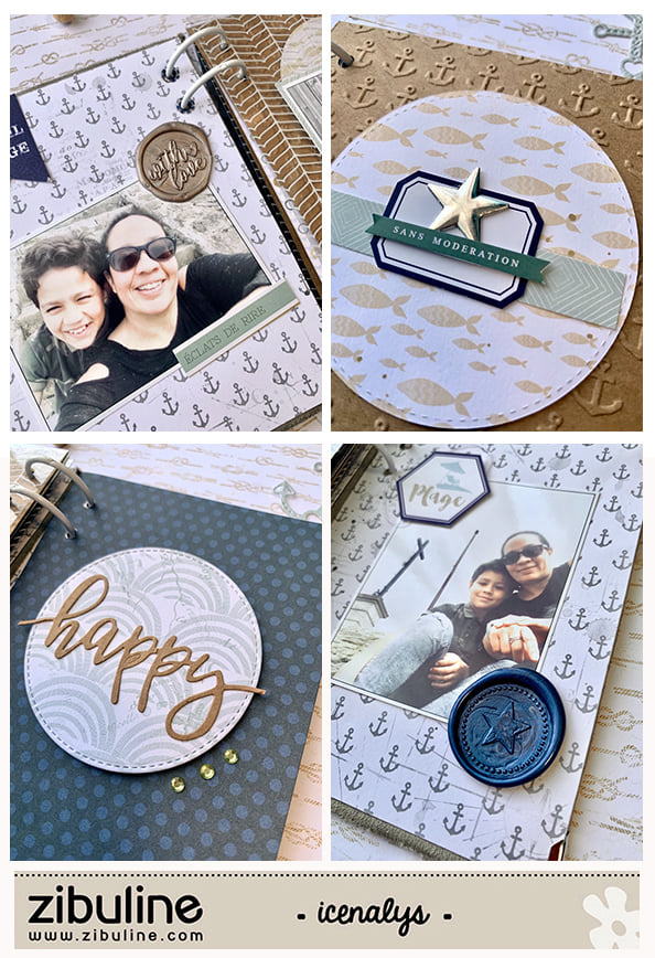 Une jolie page de Nathalie Icenalys avec un joli cachet « with love » et la cire « Taupe nacrée ».